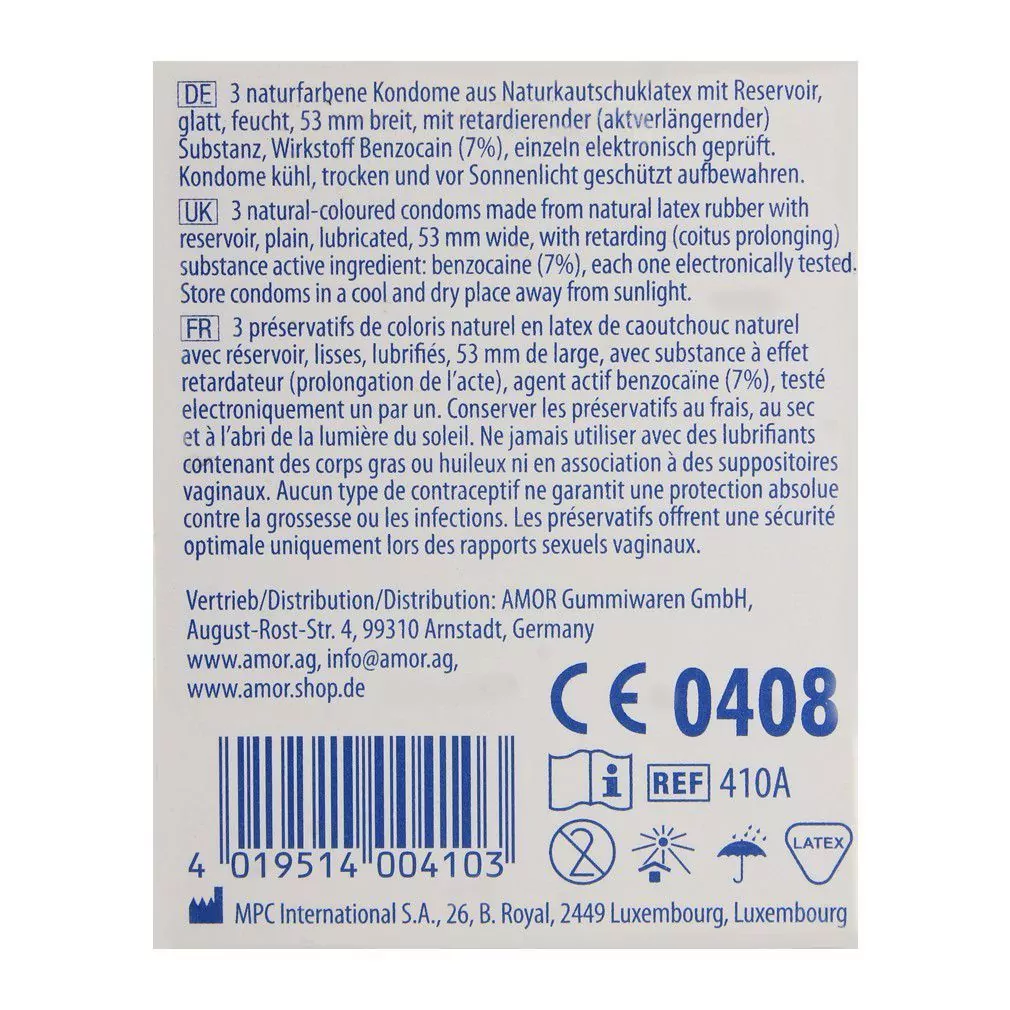 Transform your intimate moments into lasting memories with Amor Long Love Condoms. Each pack contains 3 premium condoms, thoughtfully crafted to extend pleasure, allowing couples to savor every second together. With a special lubricant that helps delay climax, these condoms promise an enhanced, prolonged experience. Made from high-quality latex, they ensure a perfect fit, blending comfort with utmost sensitivity. When it’s about cherishing longer, uninterrupted moments of intimacy, trust in Amor. Dive deep into passion, knowing that both prolonged pleasure and top-tier protection are in hand.