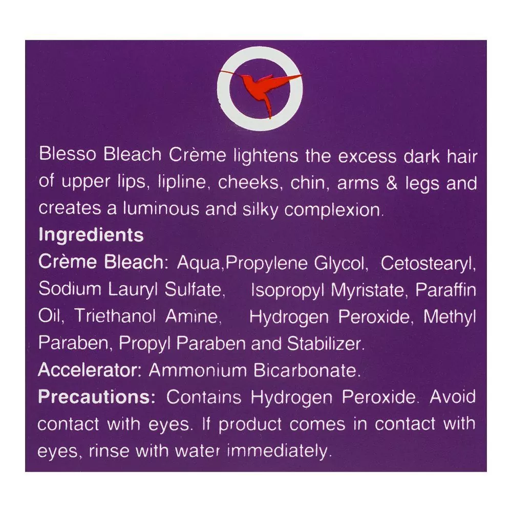 • Advanced Lightening: Blesso Bleach Creme masterfully lightens unwanted facial hair and dark spots, harmonizing them with your natural skin tone to unveil a radiant, unified complexion.