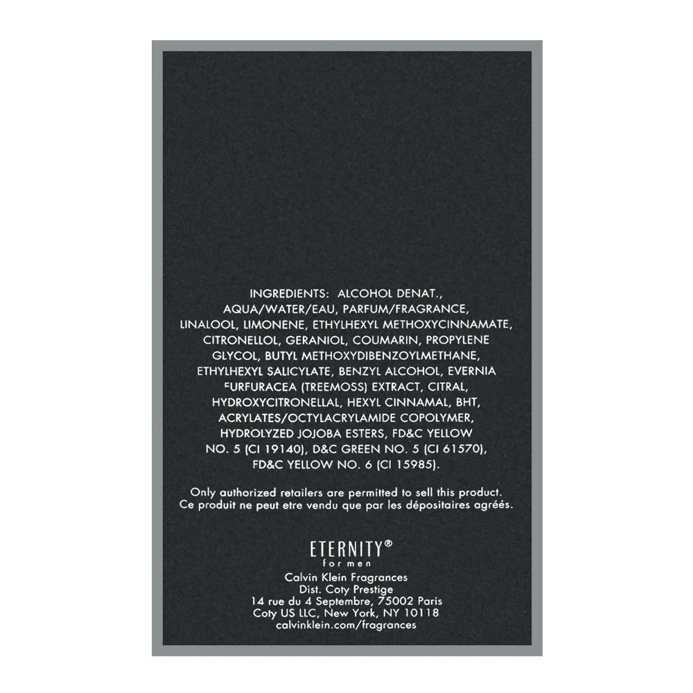 Iconic Fragrance: Eternity by Calvin Klein is an iconic eau de toilette, a 100ml embodiment of timeless masculine elegance and sophistication that has captivated hearts since its inception.