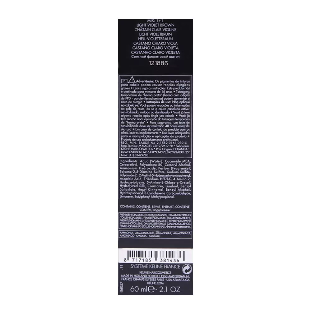 - Holistic Hair Care: Keune Tinta Light Violet Brown goes beyond just giving you a vibrant shade. Its nourishing formula ensures your hair is cared for, protected, and rejuvenated with every application.
