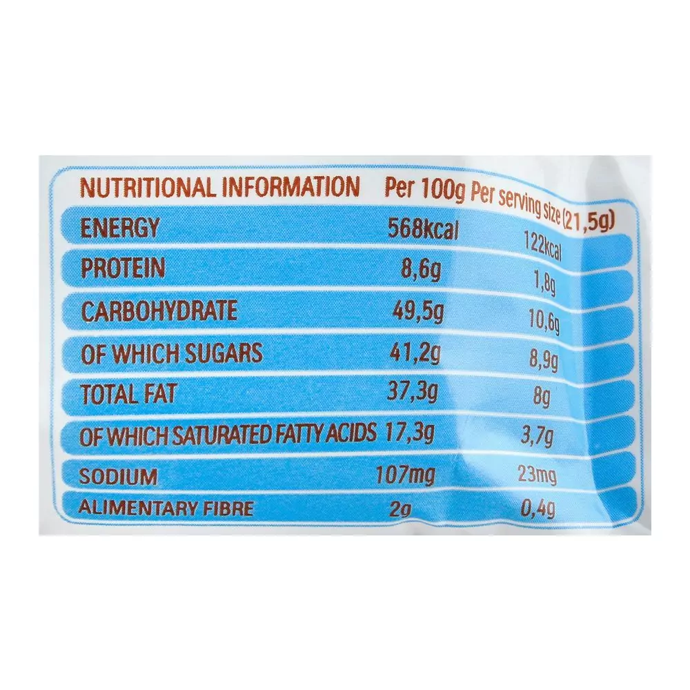 Delicate Milk Chocolate Coating: Each bar is coated in a thin layer of high-quality milk chocolate, further enhancing the taste experience. The chocolate is carefully tempered to add just the right amount of sweetness and a silky texture.