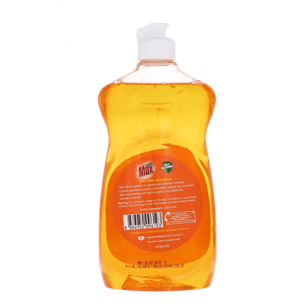 Lemon Max Dishwash Liquid Anti Bacterial, With Real Lemon Juice, 475ml
