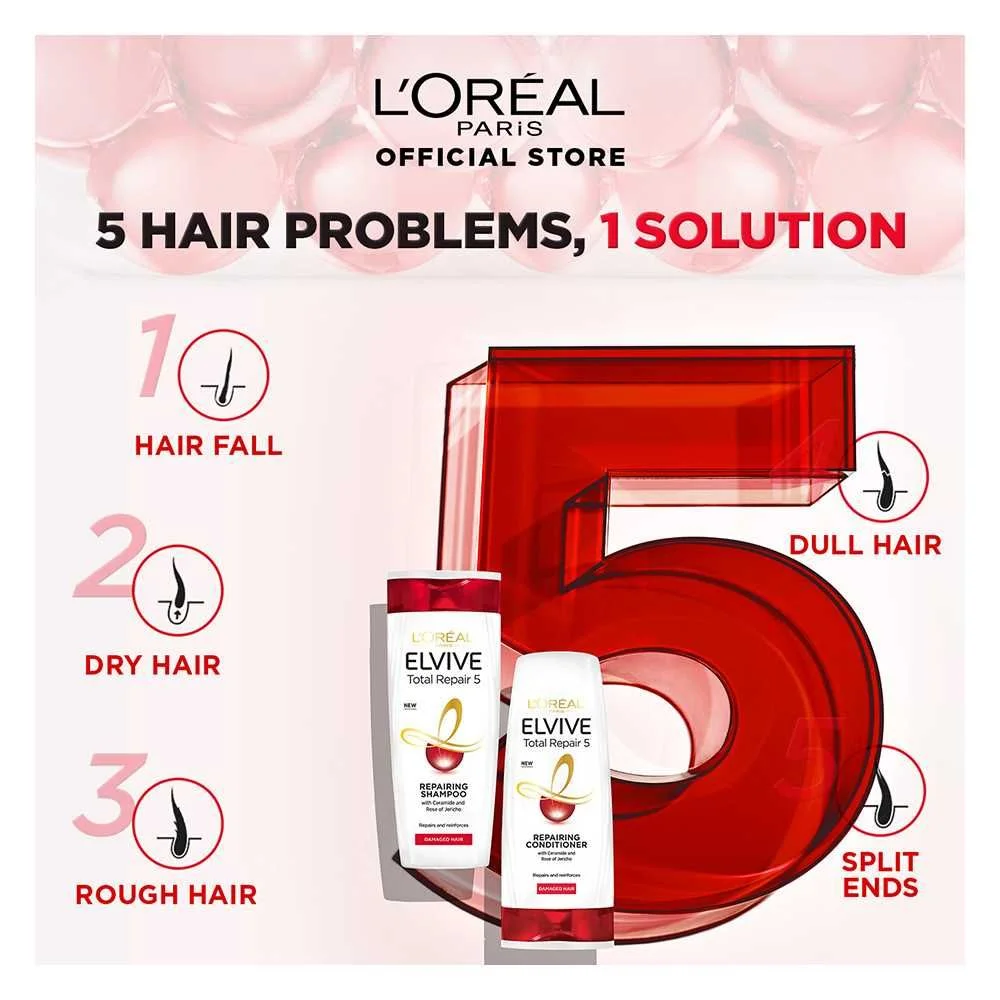 L’Oreal Paris Elvive Total Repair 5 Repairing Shampoo, 360ml – The Ultimate Rejuvenation for Damaged Hair, Now Featured on Catch n Pack Pakistan