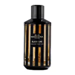 Mancera Black Line EDP 120ml bottle against a dark, elegant background, showcasing its amber and rose notes.