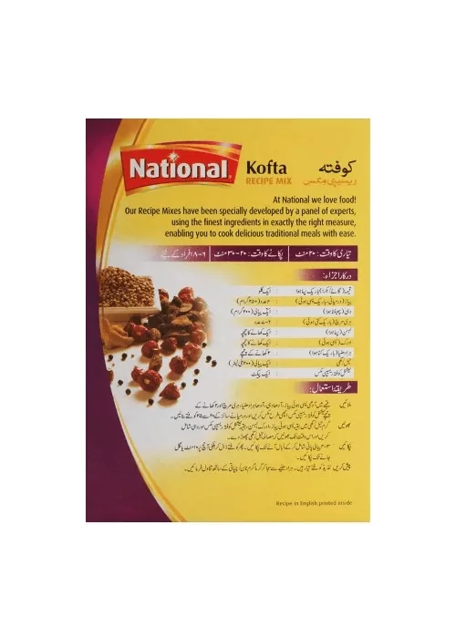 National Kofta Masala Mix is a savory blend of spices used to make delicious koftas, or meatballs. The blend contains a combination of spices such as coriander, cumin, ginger, red chili powder and more. Koftas are classic Middle Eastern and North African dishes that can be made with beef, lamb or chicken. This simple mix makes it easy to make flavorful koftas at home.