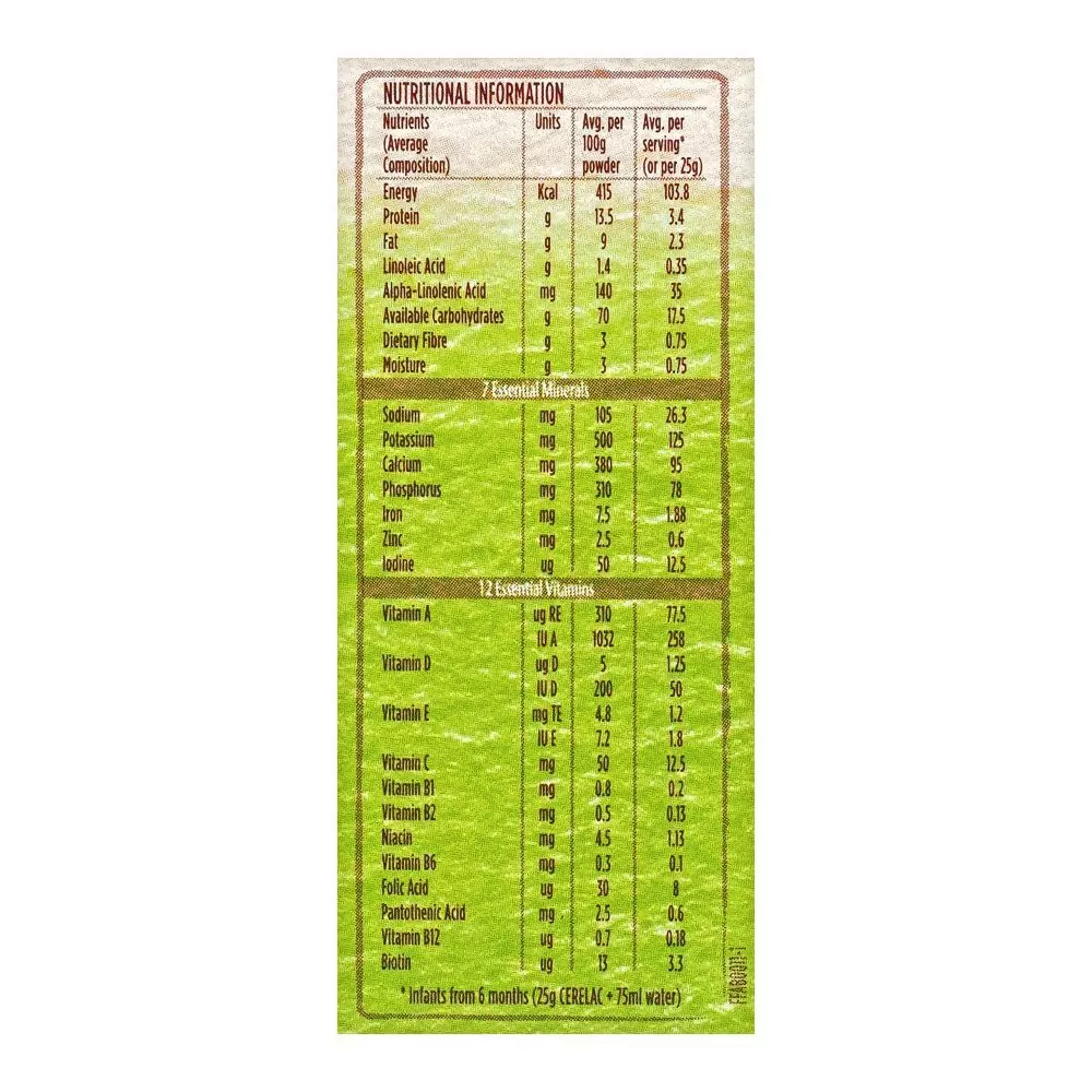 - Packed with Nutrients: Ensuring a well-rounded diet, this Cerelac variant comes enriched with essential vitamins and minerals, tailored for your baby’s growth phase.