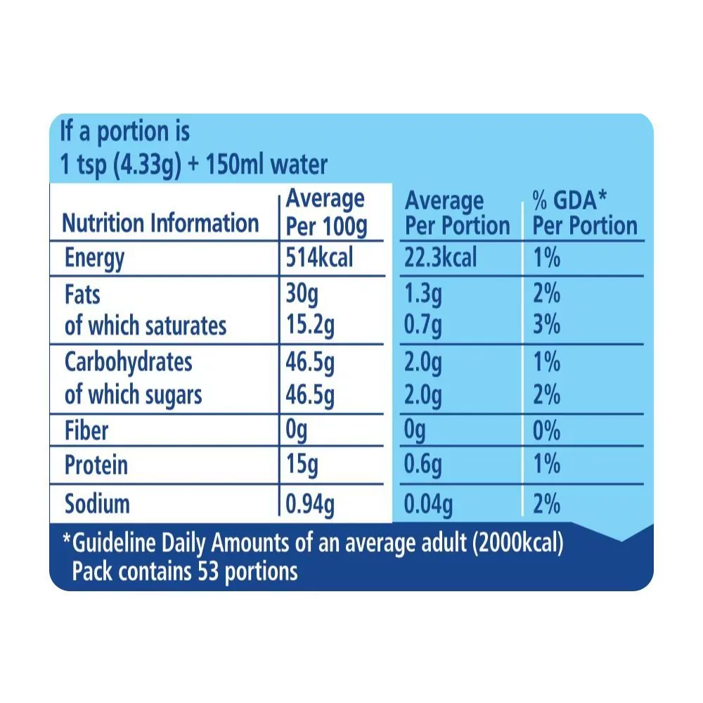 Nestle Everyday Milk Powder is a full-cream, lactose-free and low-fat milk powder that is enriched with vitamins A and D. This product features a smooth creamy texture that makes it easy to dissolve in both cold and hot beverages. It also has a great taste, making it ideal for use in baking, desserts, sauces, coffee and tea drinks. Nestle Everyday Milk Powder contains calcium which helps to maintain strong bones and teeth as well as phosphorus which helps to produce energy for the body. It can be used as a substitute for regular liquid milk or cream when preparing various recipes or beverages.