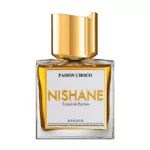 Nishane Pasion Choco Extrait 50ml bottle with a chocolate-inspired background, highlighting its luxurious aroma.
