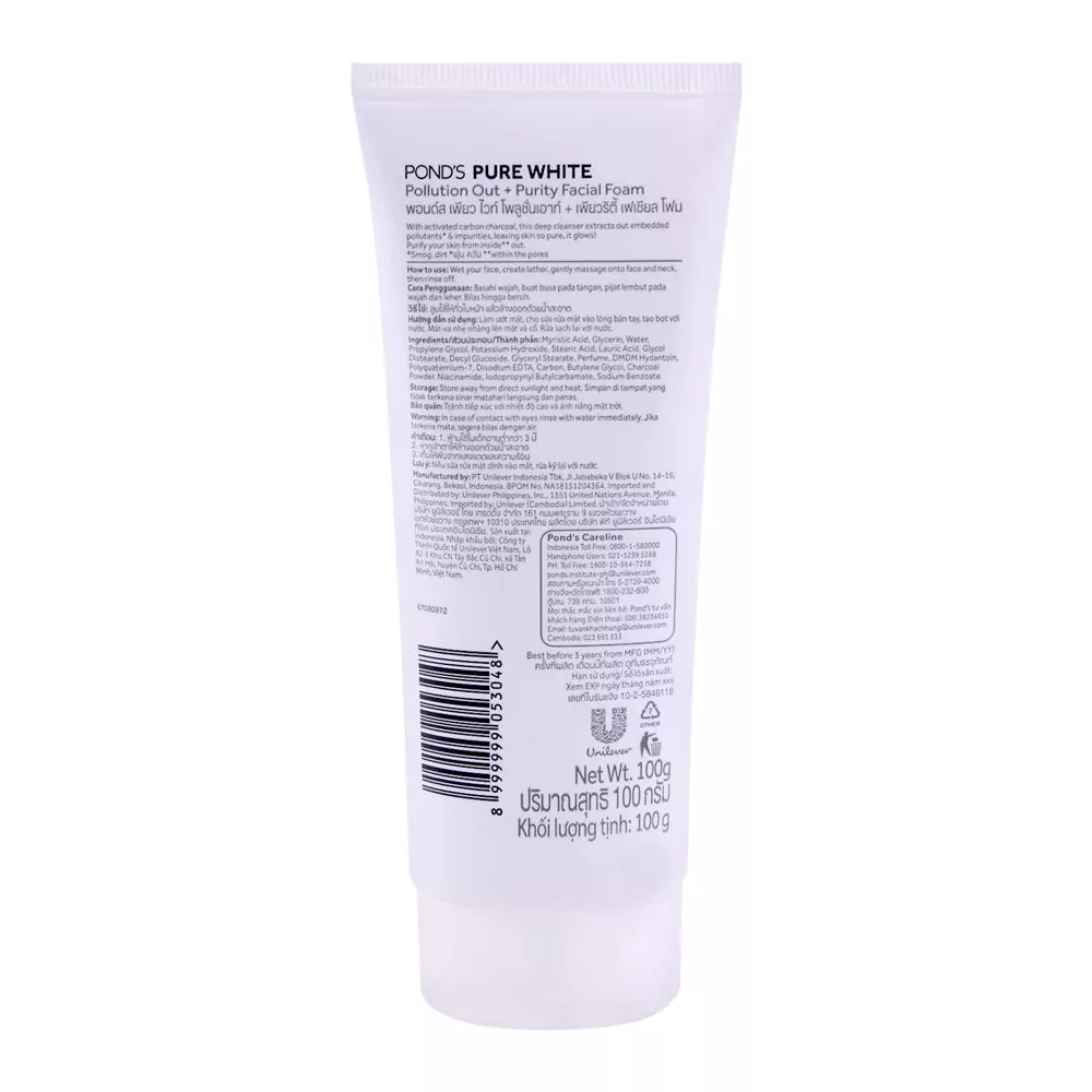 Pond’s Pure White Facial Foam Pollution Out + Purity, 100g: Your Shield Against Urban Pollution, Exclusively at Catch n Pack Pakistan