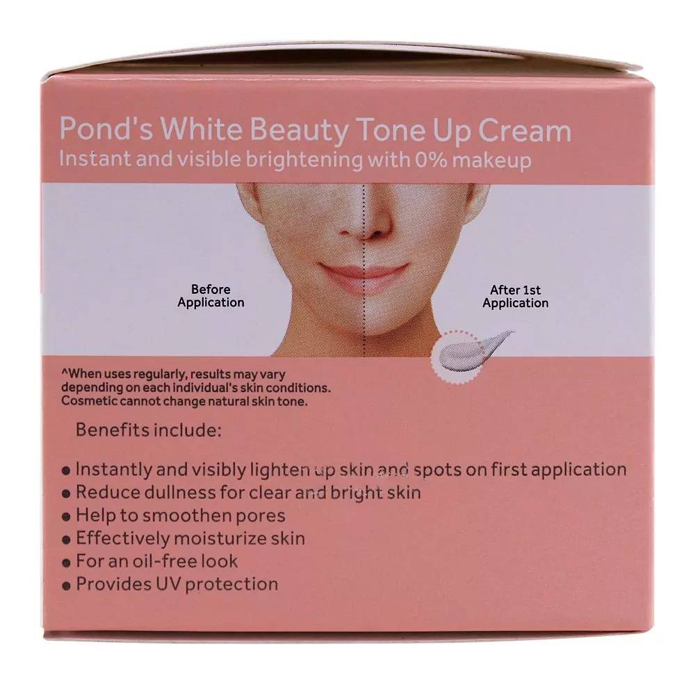 Unveil radiant, even-toned skin with Pond’s White Beauty Tone Up Milk Cream, available in a convenient 50g jar. This breakthrough formulation, enriched with milk essence, works to visibly lighten skin, reducing dark spots and uneven pigmentation. Its tone-up effect provides an immediate glow, preparing the skin for a flawless makeup application. Lightweight and nourishing, the cream seamlessly blends, leaving the skin feeling soft, plump, and hydrated. With regular use, experience a transformed complexion that’s luminous and beautifully balanced.