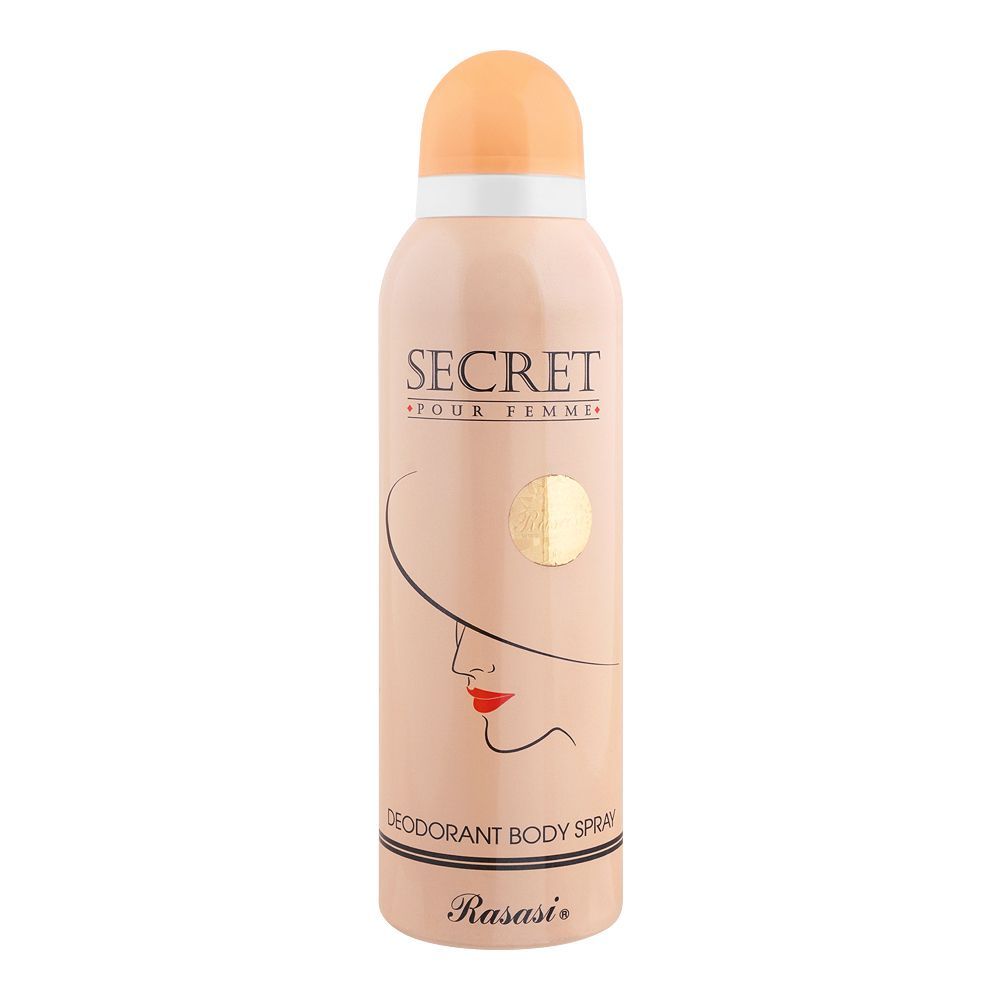 Rasasi Secret Pour Femme Deodorant Body Spray, 200ml – Unravel the Mystique of Femininity, Exclusively at Catch n Pack Pakistan