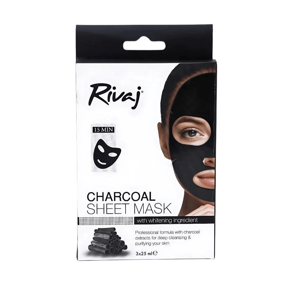 Rivaj Charcoal Sheet Mask is your perfect companion for achieving clean and glowing skin. Infused with the purifying power of charcoal, this mask absorbs dirt, impurities, and excess oil while minimizing pores. It rejuvenates your skin, leaving it smooth, hydrated, and refreshed. This sheet mask is ideal for all skin types, offering a relaxing experience with visible results.
