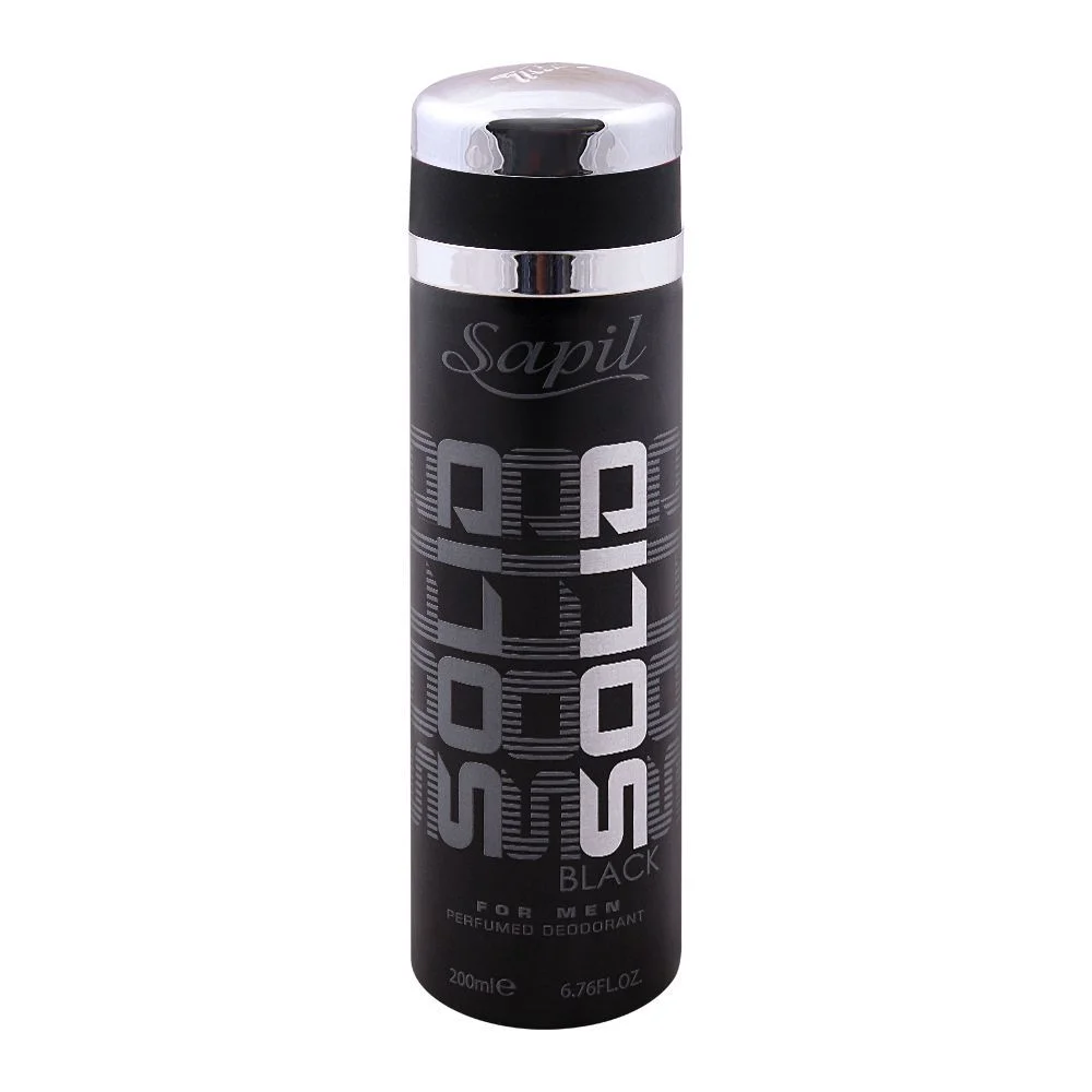 Sapil Solid Black Men Deodorant Body Spray, 200ml – Embrace the Power of Darkness with Catch n Pack Pakistan