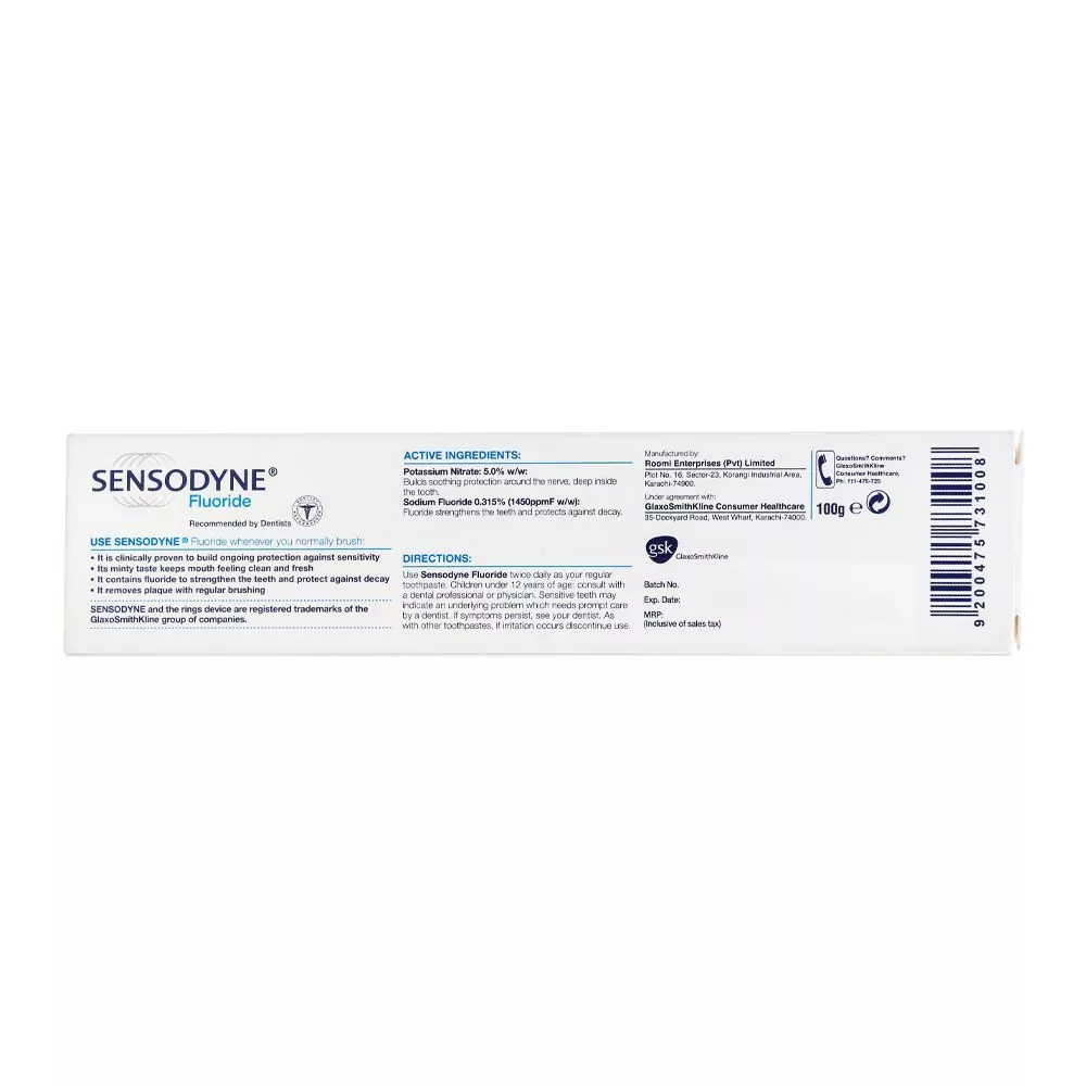 Sensodyne Fluoride Toothpaste, 100g – Strengthening Enamel with Expert Sensitivity Care, Exclusively at Catch n Pack Pakistan