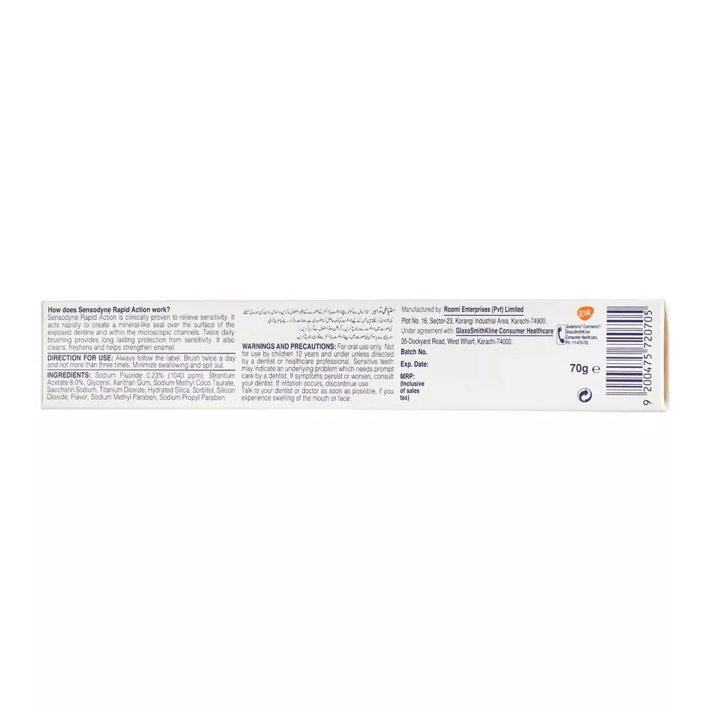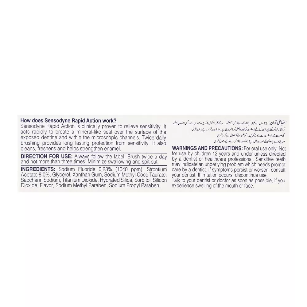 - Available at Catch n Pack: For swift and lasting sensitivity relief, the choice is clear – Sensodyne Rapid Action. Secure your tube now, exclusively at Catch n Pack Pakistan.