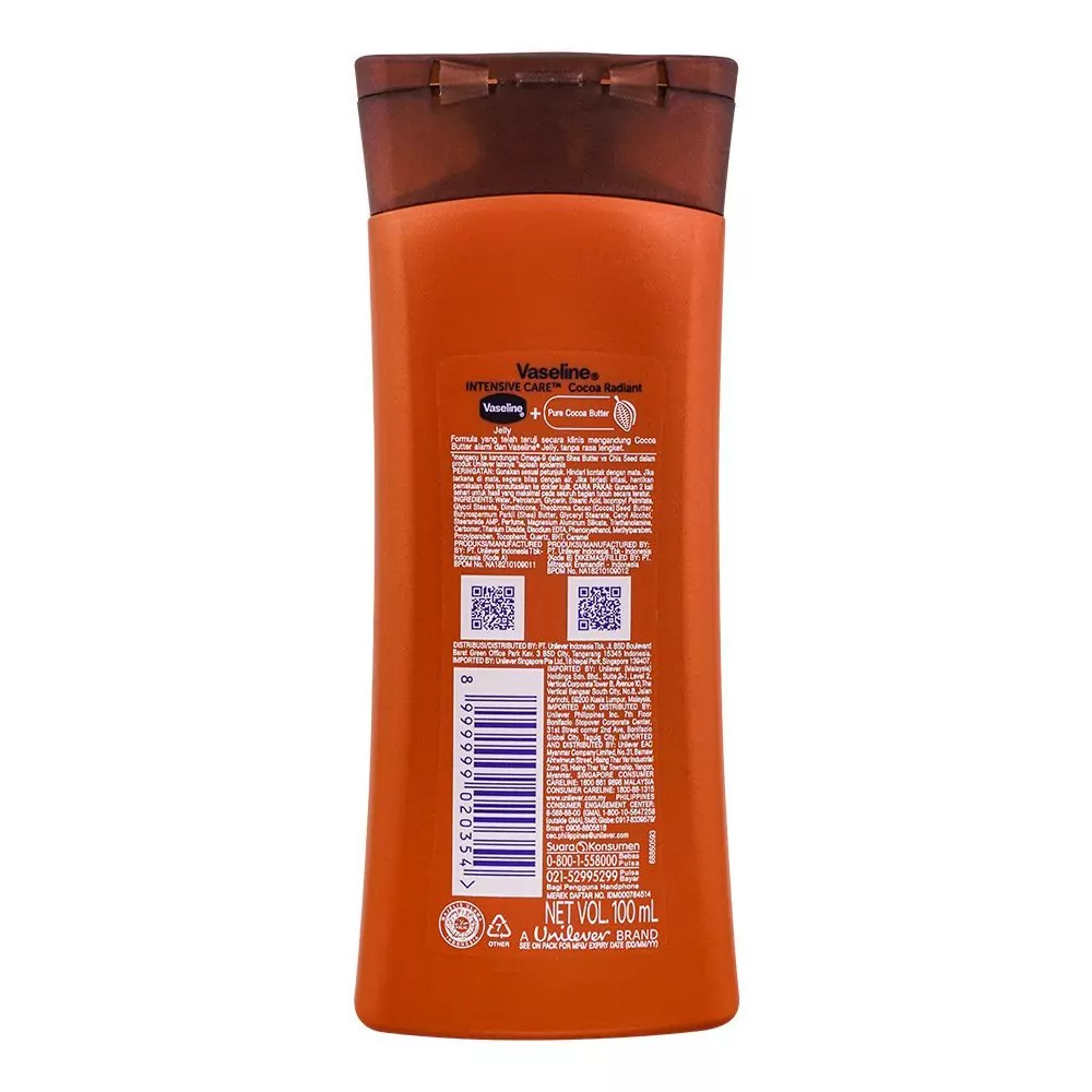 - Your Radiance Pick at Catch n Pack: Indulge in the cocoa-rich allure of Vaseline Intensive Care Cocoa Radiant Pure Cocoa Butter Body Lotion. Make it your go-to radiance booster, available exclusively at Catch n Pack Pakistan.