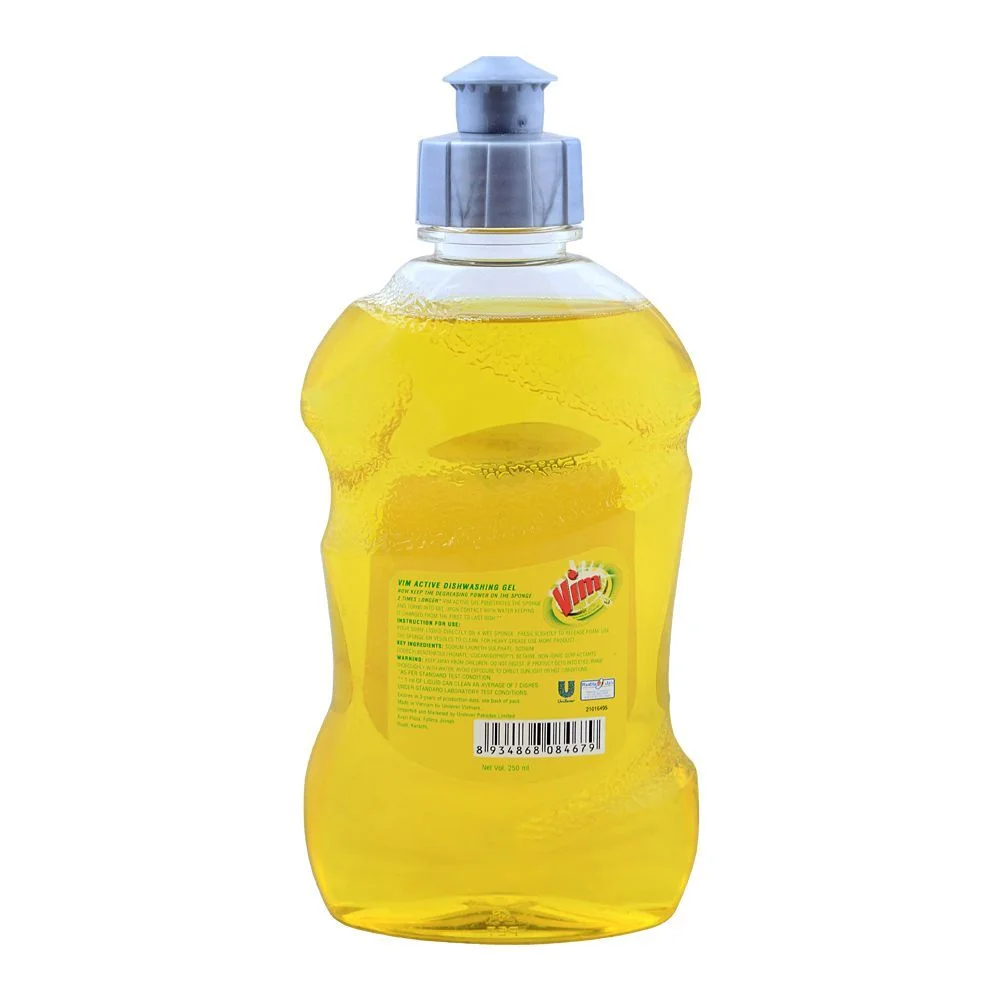 Vim Lemon Dishwash Active Gel 250ml – Citrus-Powered Sparkle for Your Dishes, from Catch n Pack Pakistan