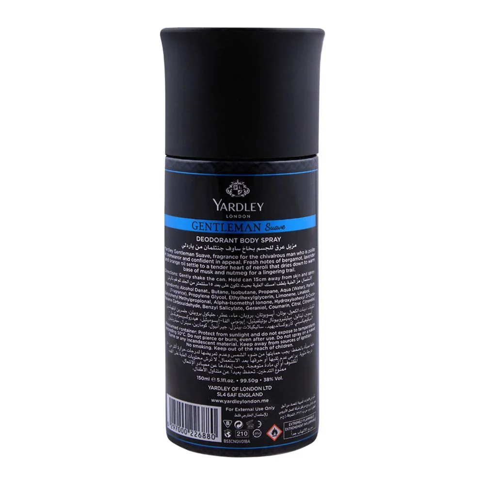 Yardley Gentleman Suave Deodorant Body Spray, 150ml – The Quintessence of Dapper Charisma, Exclusively at Catch n Pack Pakistan